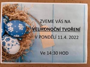 ZVEME VÁS NA VELIKONOČNÍ TVOŘENÍ, V PONDĚLÍ 11. 4. VE 14:30 HODIN VE TŘÍDĚ U POHÁDKOVÉHO STROMU.