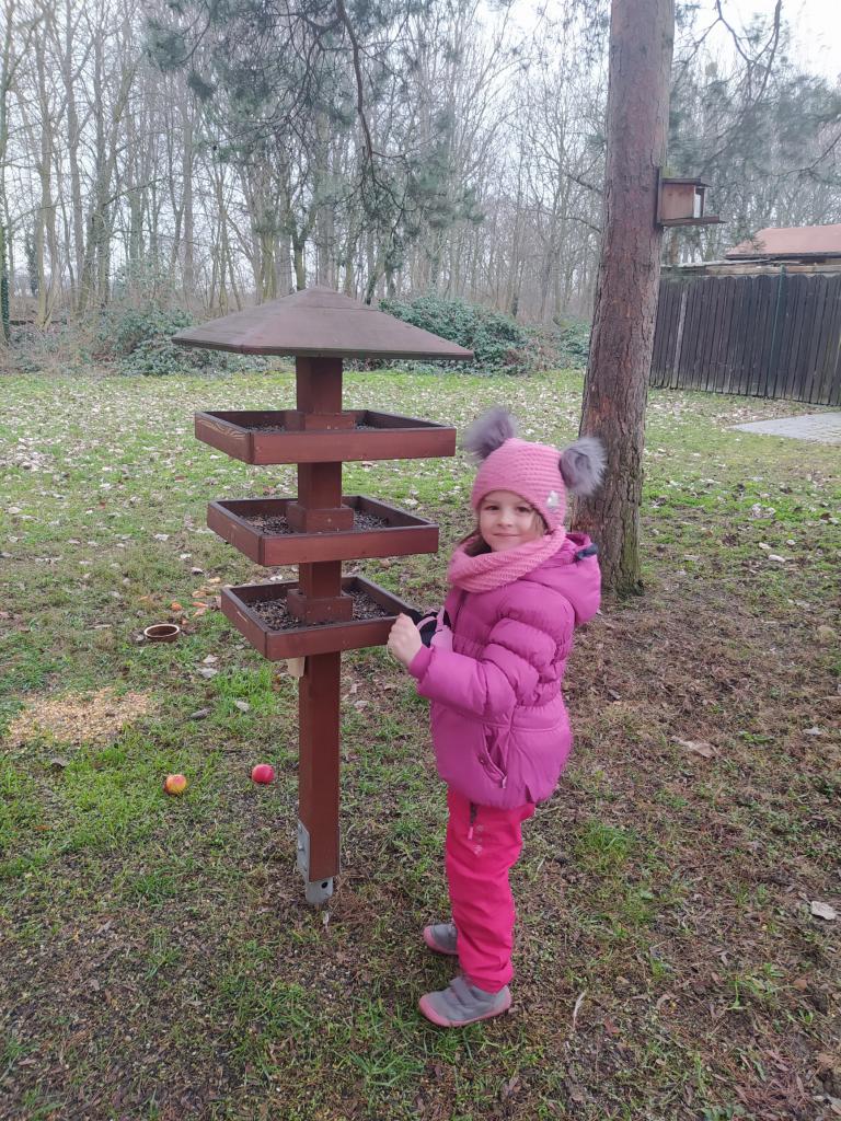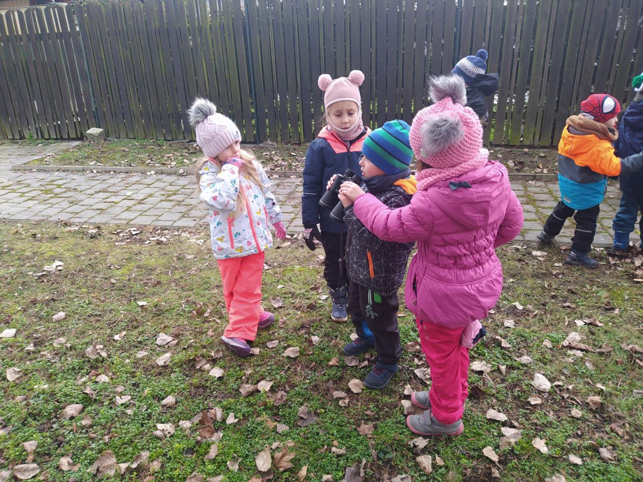 Za ptáčky s dobrotami ke krmítku. S sebou jsme vzali i dalekohled.