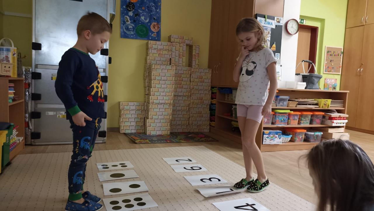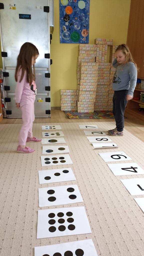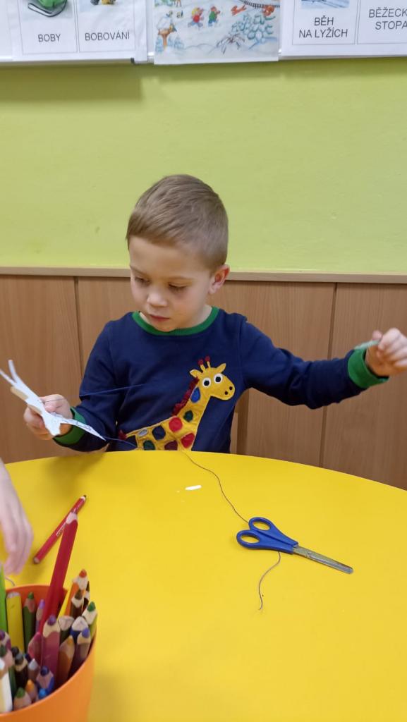 Poznávání číslic/počtu teček, stříhání, provlékání