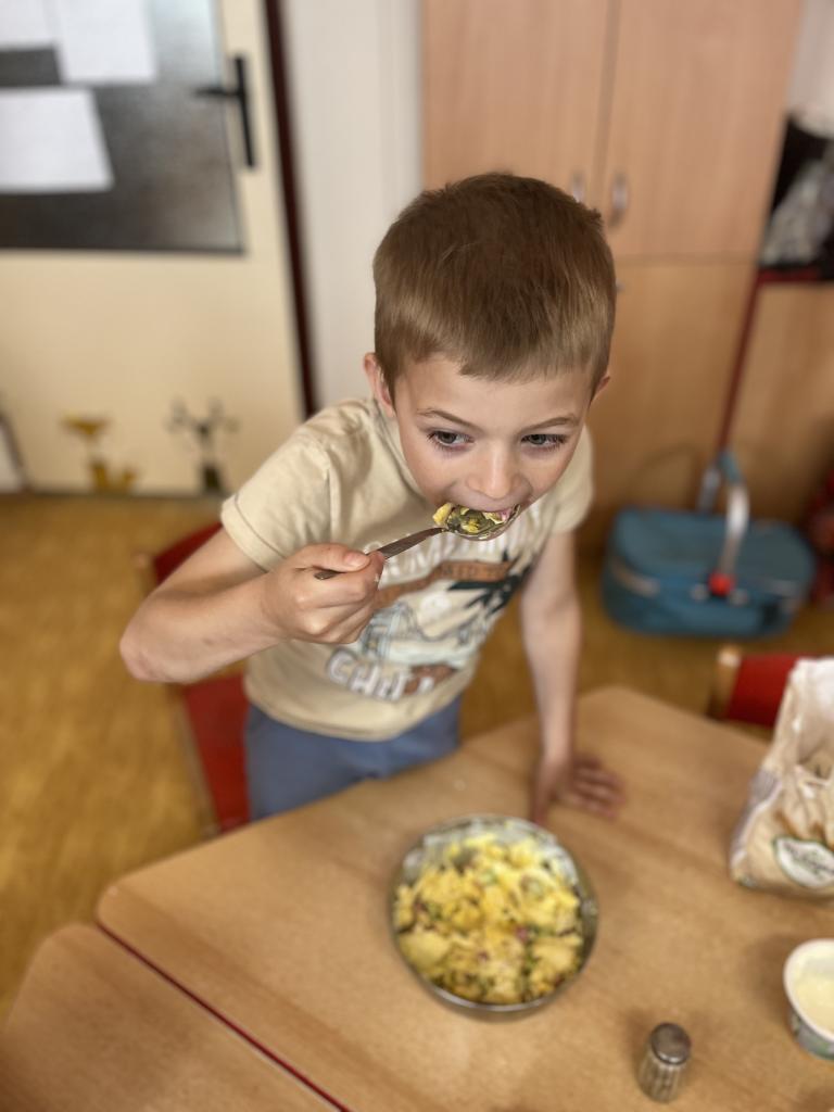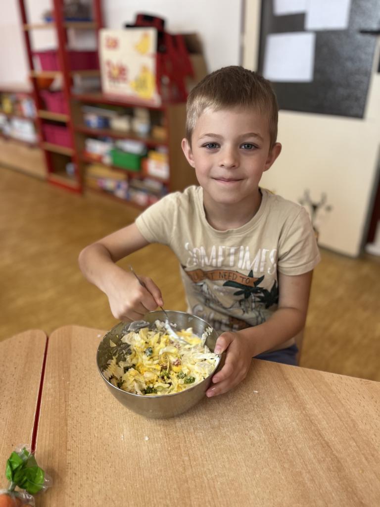 Zapojili jsme se do soutěže, kde měly děti připravit nějakou jednoduchou dobrotu ze zeleniny. Zvolili jsme zelné placky s jarním salátkem.
