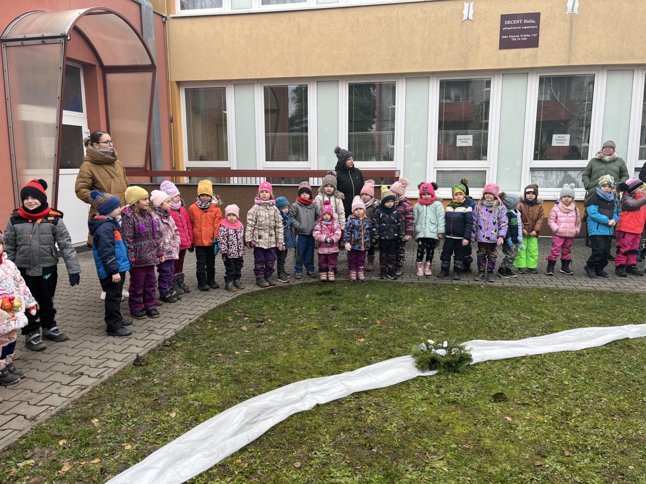 Před budovou MŠ
