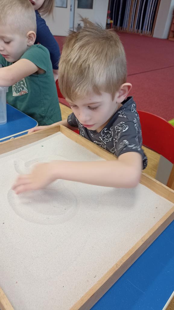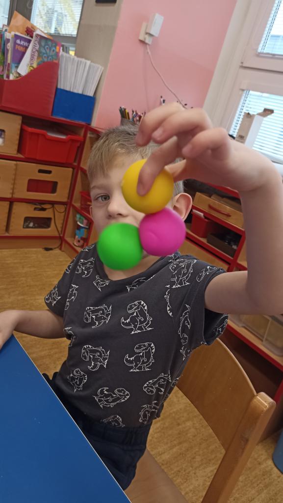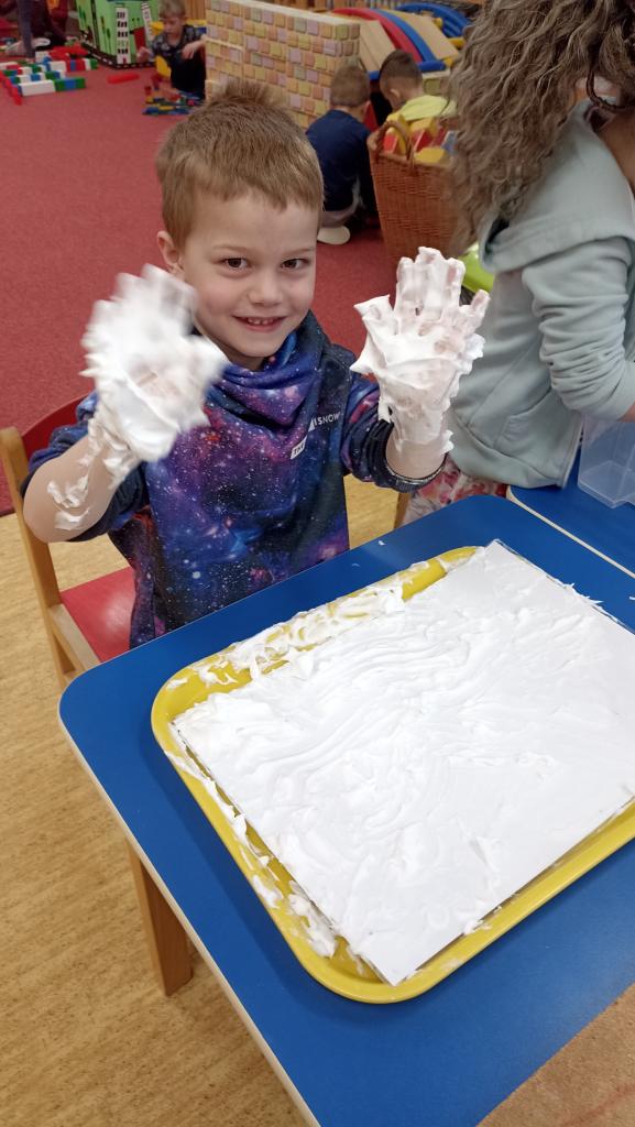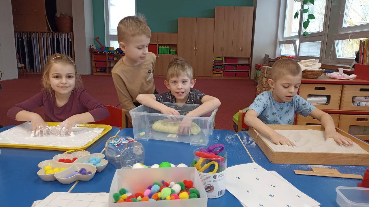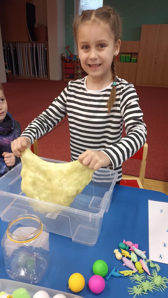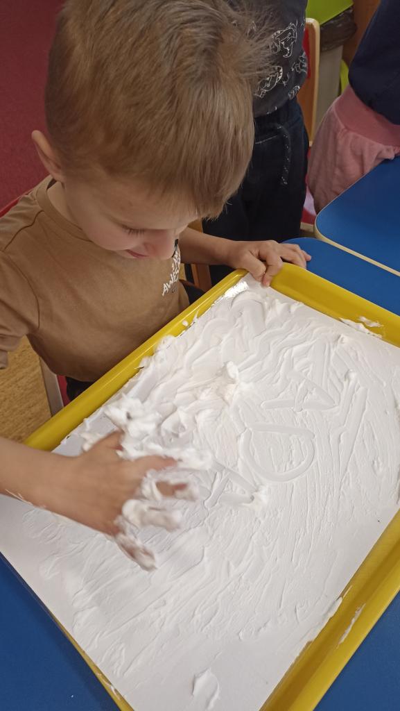 Práce s LED tabulkou, pěnou na holení, slizem, kinetickým pískem....